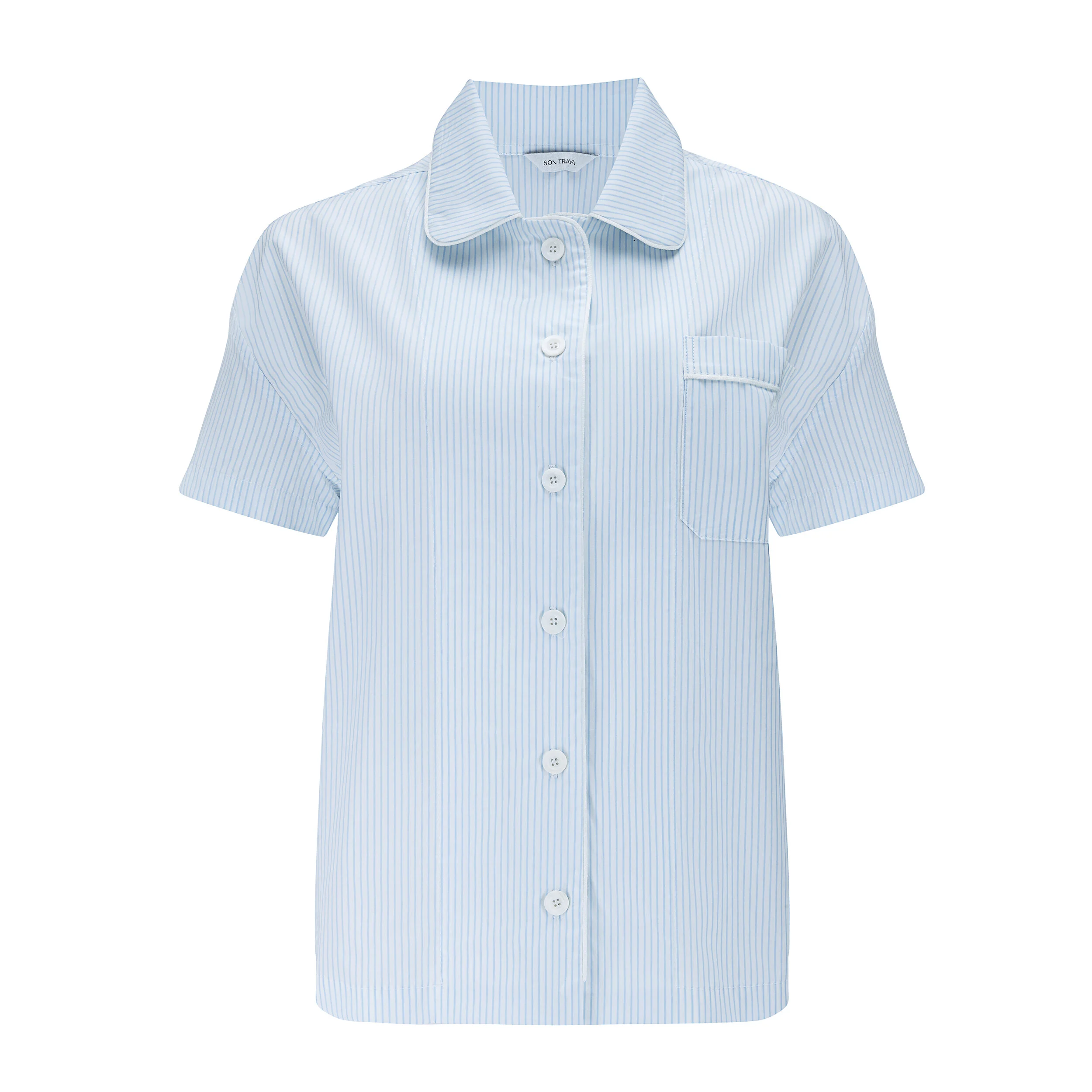Рубашка с коротким рукавом, сделанная из натурального хлопка наивысшего качества, произведенного в Италии. Пуговицы из натурального жемчуга.