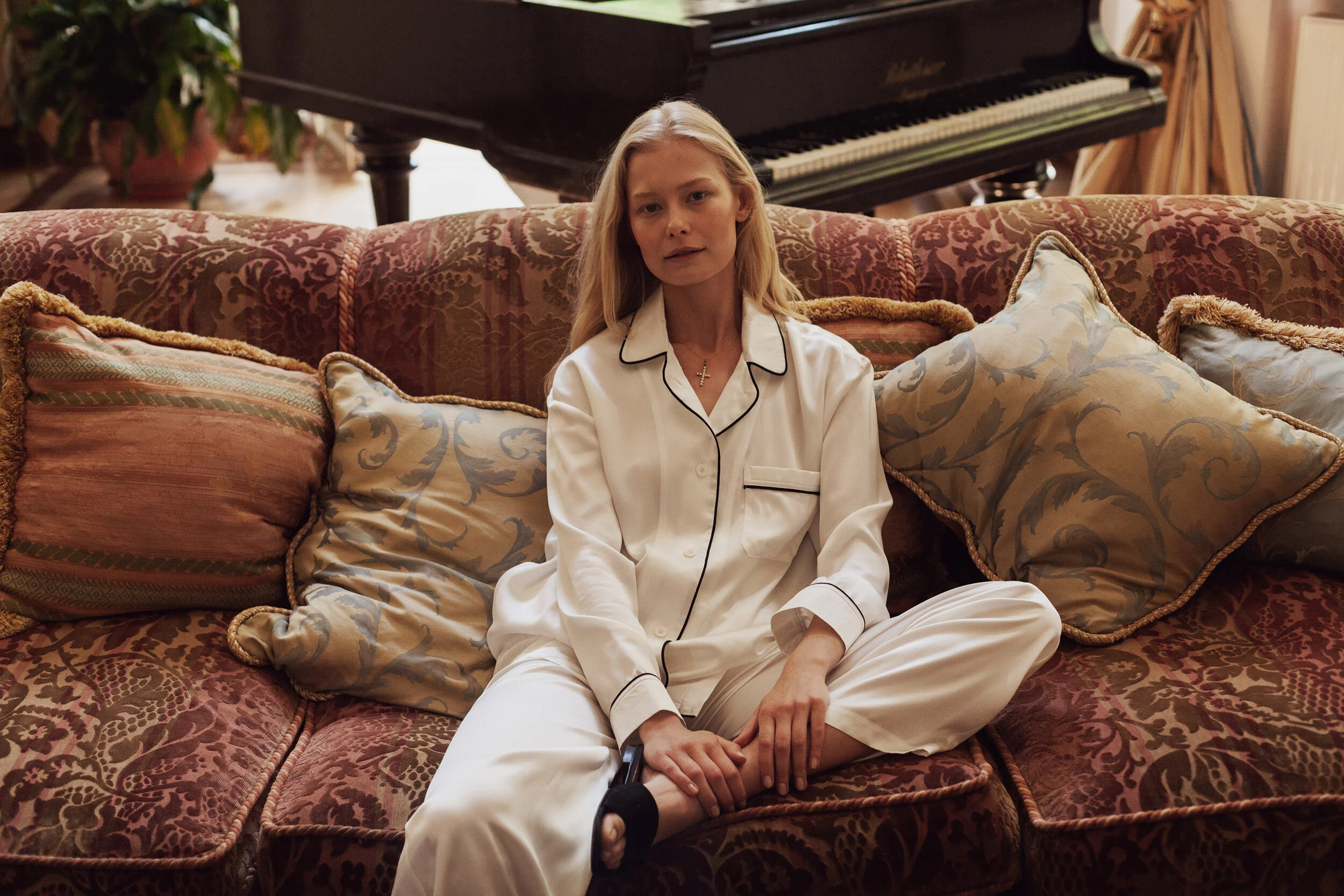 Этот комплект, вдохновленный классической мужской пижамой, прекрасно подходит как для сна, так и для встречи гостей или вечернего выхода.